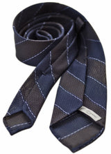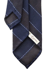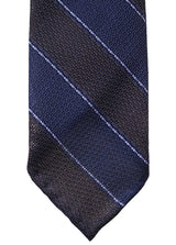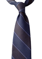 F. Marino garza grossa silk grenadine wide stripe tie, navy and brown