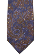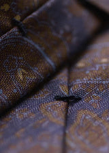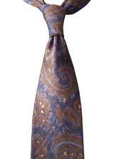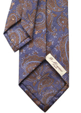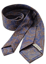 Jacquard paisley silk tie, blue background with brown paisley, made entirely by hand in Naples.
