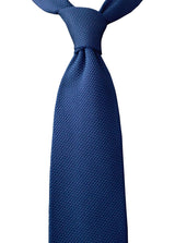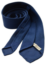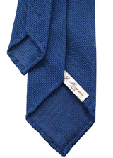 Garza fina silk grenadine tie, blue, made entirely by hand in Naples. Garza fina refers to the fine gauge mesh characteristic of the fina grenadine weave.
